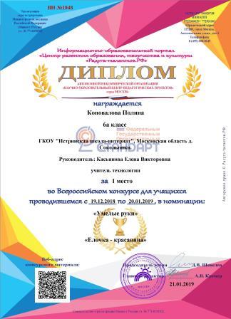 - Купцова Светлана (10В класс) и Марченко Полина (9В класс), поделка выполненная в лоскутной технике