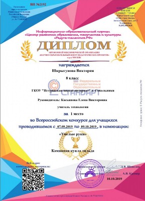 В конкурсе «Традиционная кукла» наши учащиеся заняли все 1 места: Воробьев Максим и Марченко Полина (10 в класс), Бондар Анастасия (9 а класс) и Трушечкина Елизавета (5 класс).