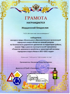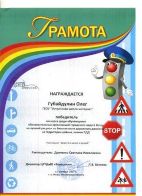 Наши ребята приняли участие в Конкурсе среди обучающихся образовательных организаций городского округа Истра на лучший рисунок по безопасности дорожного движения на территории района, знание Правил дорожного движения. Работы в номинации «Дорога в школу и домой» представили Аристархова Любовь (8А) и Орзуев Мухаммад (7В). По тематике «Соблюдение ПДД по временам года» свои рисунки подготовили Иорданский Владислав (8А), Тучкин Арсений (8В), Коваженков Юрий (8В). Все участники Конкурса были награждены Грамотами. Молодцы, ребята! Благодарим педагогов Касьянову Елену Викторовну и Дьяченко Светлану Николаевну. |