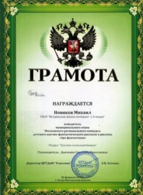 В январе 2016 года воспитанники нашей школы принимали активное участие в конкурсе "Эра фантастики", проводимом в Истринском муниципальном районе и заняли призовые места.